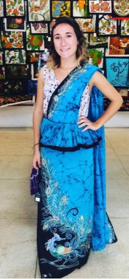 Trying on a traditional Sari at a Batik factory